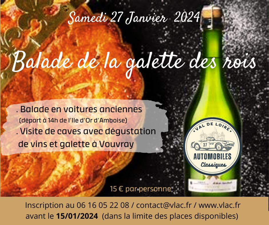 Balade en voitures de collection, suivie d'une visite de caves et d'une dégustation de vins, accompagnée d'une part de galette des rois.